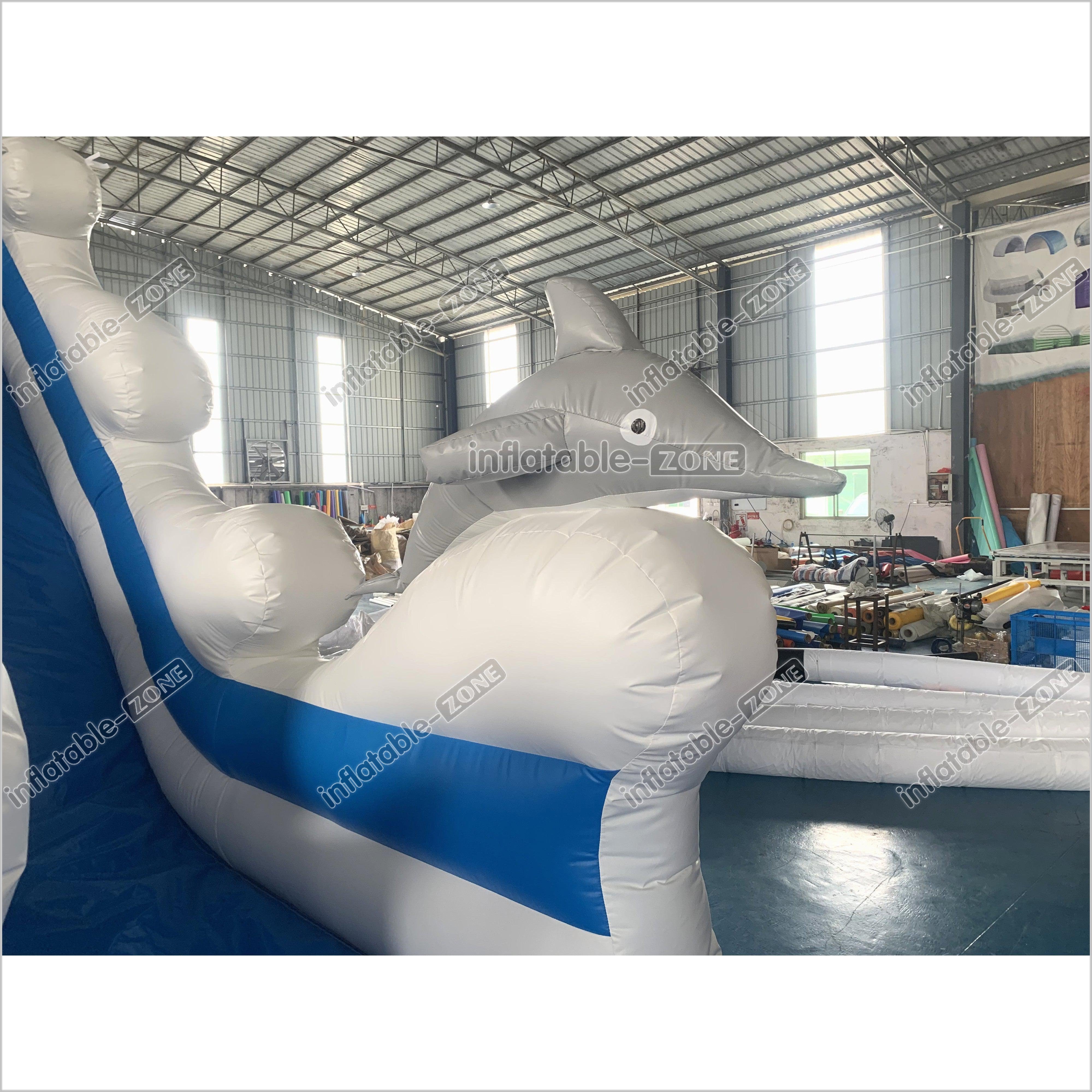 Tauchen Sie mit dem Blue Delphin Wave Commercial Blasable Slide in den themenübergreifenden Spaß! Diese auffällige einspurige Folie verfügt über ein dynamisches Wellendesign und einen spielerischen Delphin, der für jedes Ereignis einen Spritzer Aufregung verleiht. Ideal für Partys und Versammlungen, es ist langlebig, hüpfen und sorgen für Stunden Spaß. Machen Sie bei Ihrem nächsten Ereignis Wellen mit diesem aufregenden aufblasbaren aufblasbaren Ereignis!