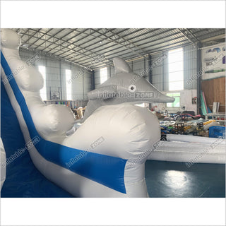 | Produktname | Blue Delphin Wave kommerzielle aufblasbare Rutsche Ozeanstil Einspurige Folie Bouncy und Fun Party |