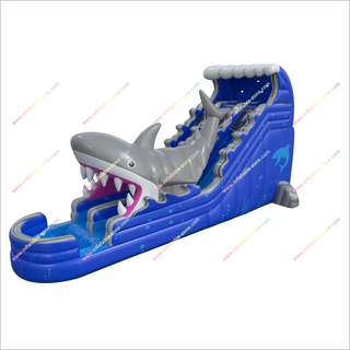 | Produktname | Doppelspurhai -Angriff Wasserrutsche Große Outdoor Großartiger aufblasbarer Hai -Hüschchen |