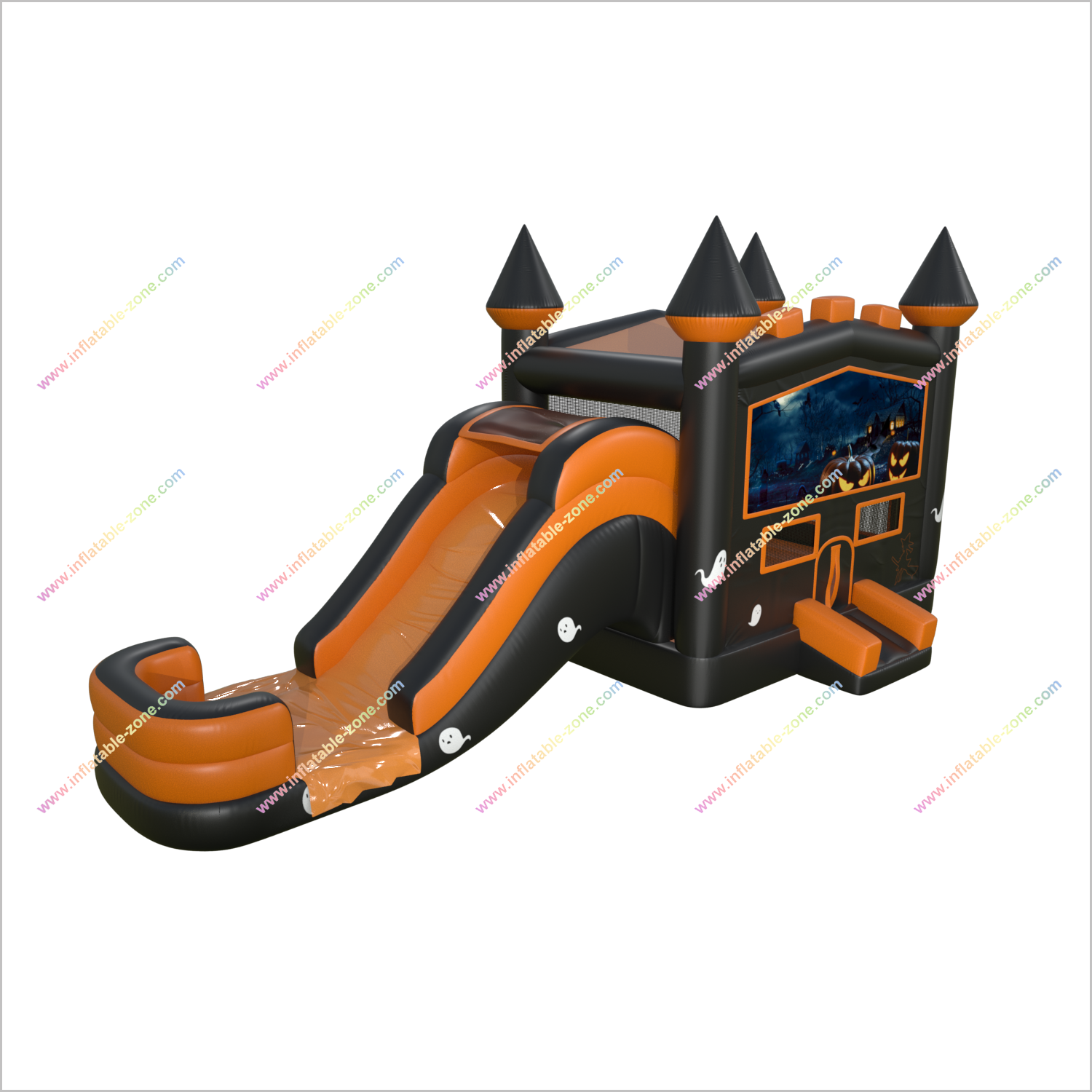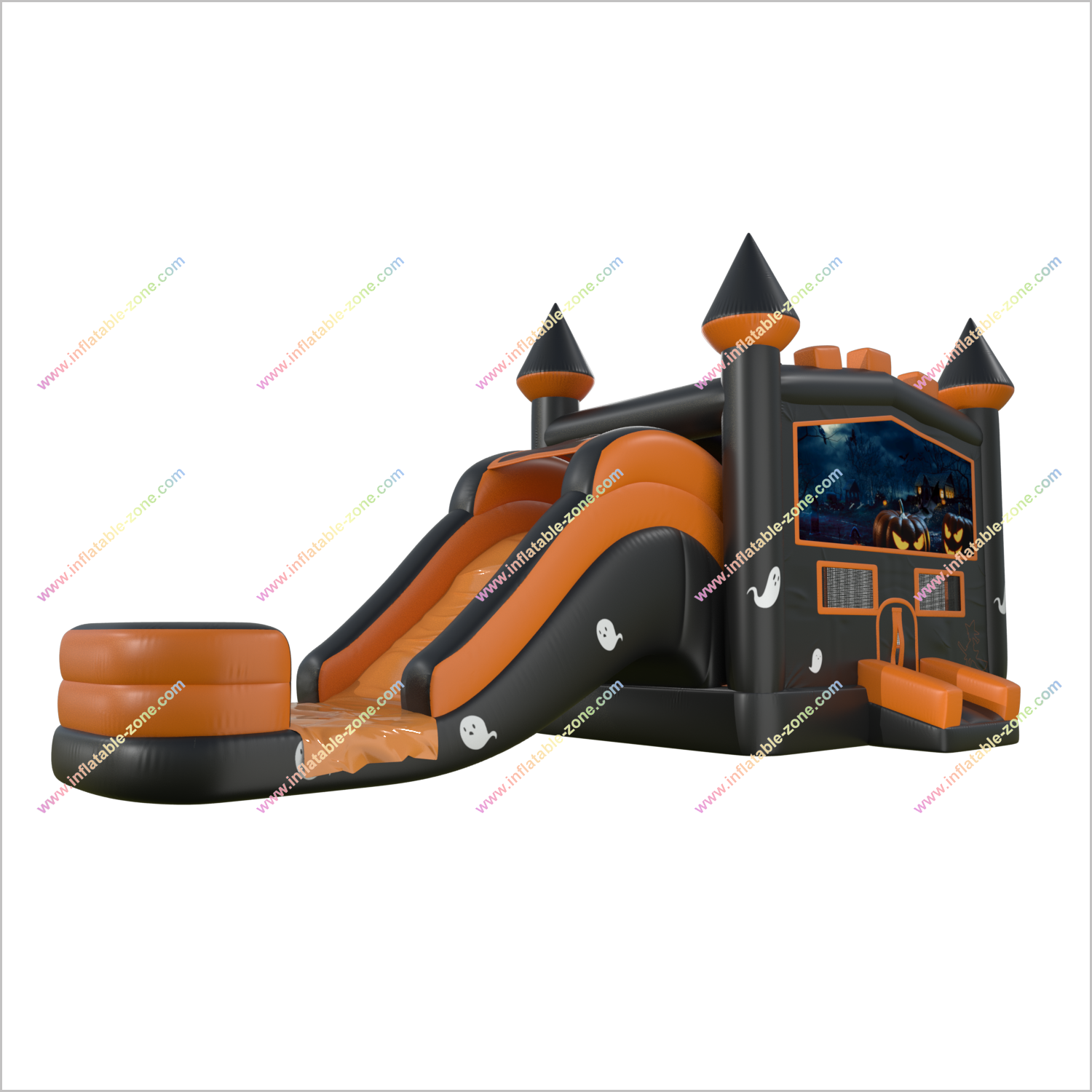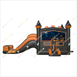 Halloween Pumpkin Ghost Castillo hinchable y tobogán de agua Combo pequeño Piscina inflable con alquiler de tobogán una casa de rebote para adultos