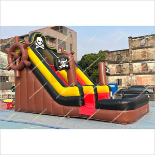 Metti in navigazione per divertirsi con lo scivolo d'acqua gonfiabile con pirata! Questo elettrizzante scivolo d'acqua di dimensioni per adulti presenta una piscina per la massima eccitazione. Perfetto per feste o eventi nel cortile, è l'ultimo affitto gonfiabile per avventure estive indimenticabili. Prenota ora per divertimento non-stop vicino a te!